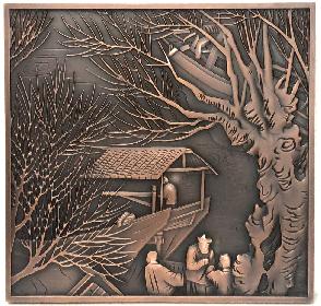 銅工藝品作為一種本質(zhì)的金屬藝術(shù)載體,將它融入到當(dāng)代的商業(yè),家居,酒店,裝飾文化為一體,從而賦予它新的生命和無(wú)上的文化內(nèi)涵,是眾多銅藝者的畢生追求。懷揣繼承發(fā)揚(yáng)中華傳統(tǒng)藝術(shù)的執(zhí)著之心,將人文美學(xué)的點(diǎn)點(diǎn)滴滴滲透于藝術(shù)中,在此期間,公司在不斷的與眾多知名設(shè)計(jì)師溝通與交流,并將感之所悟巧妙地融入當(dāng)代銅藝制造當(dāng)中去,全新體現(xiàn)了藝術(shù)的真諦,有道是:百融精工明心亮,天淳地章萬(wàn)古揚(yáng)。